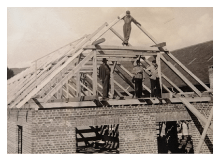 und fand bei der Zimmerei Rohr nicht nur Arbeit, sondern auch seine große Liebe, Hedwig Rohr, die älteste Tochter seines Arbeitgebers. Die beiden heirateten und übernahmen gemeinsam die Zimmerei, so dass aus der Zimmerei Rohr die jetzige Zimmerei Schäfer wurde.